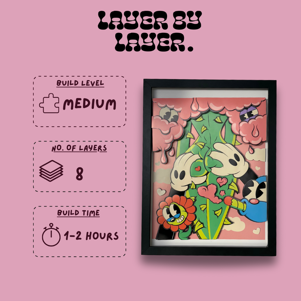 by stacking precision-cut prints of the same image. The result? A textured, layered design that pops off your wall—turning basic decor into a personal statement.
